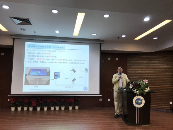 微流控技术(Microfluidics)是一门利用尺寸为几微米到几百微米的微通道网络对液体实现流动控制、能量交换和反应操纵的新兴技术。它将医学分析、生物、化学反应中的样品处理、分离、富集、筛选、检测等过程集成在一块几平方厘米的芯片上。特别是新冠疫情以来,医药行业对生物检测的时效性、精准度提出了更高的要求,而相比于传统检测技术,微流控芯片可大大缩短检测时间,简化检测步骤,且易于携带和自动化控制。李顺波教授详细地介绍了微流控芯片的概念、原理、设计、制备及其团队基于不同的微流控芯片研制的生化检测仪器在生物检测、环境监测等方面的应用,如:研制的细菌检测仪利用微流控芯片富集技术可大大提高检测的灵敏度,降低检测限;利用量子点微流控阵列成功解决了重金属离子特异性检测的难题,能够准确的判别重金属离子的种类和浓度,检测限可达0.001mg/L,响应时间在10s以内。